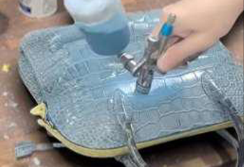 最後に、独自のコーティング剤を均一に塗布し、バッグ全体を保護膜で包み込みます。