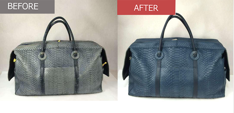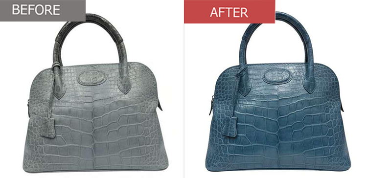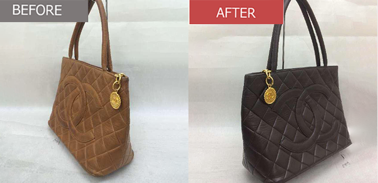 クリーニングで整えた後、色落ちやスレが気になる部分を中心に、バッグ全体の色を均一に整えます。